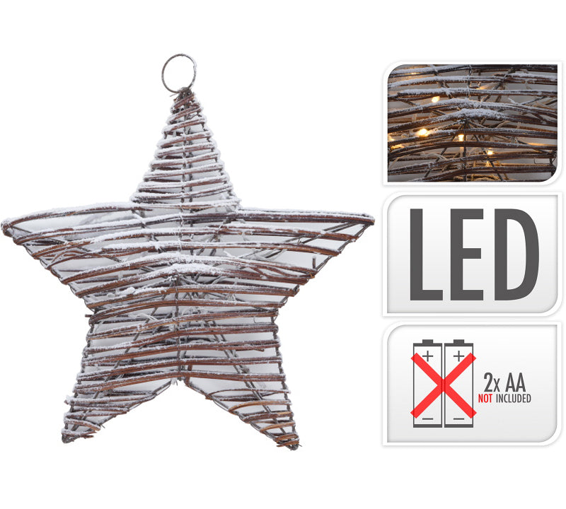 Χιονισμένο αστέρι από λυγαριά, φωτιζόμενο (10Led), 40cm